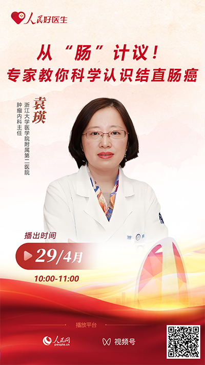 4月29日10:00至11:00✿★,浙江大学医学院附属第二医院肿瘤内科主任袁瑛做客“人民好医生”客户端直播间✿★,就结直肠癌早筛与诊疗的相关问题与网友们进行讲解与交流✿★。